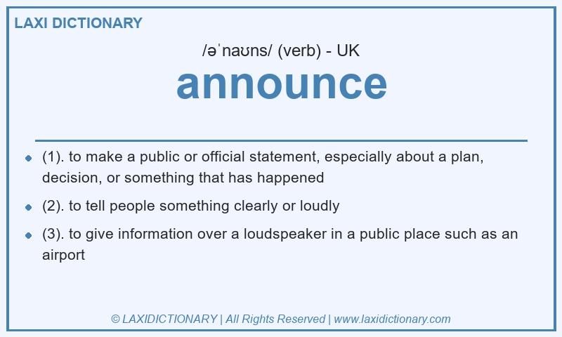 to make a public or official statement, especially about a plan, decision, or something that has happened