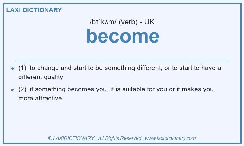 as a linking verb (followed by an adjective or noun complement): The problem became worse.He became president in 2001.